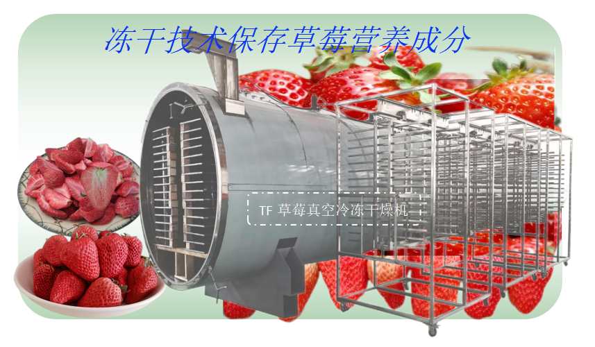 上海田枫草莓冻干机成套设备满足草莓冻干、榴莲冻干、柠檬冻干、芒果冻干、火龙果冻干、槟榔冻干、神秘果冻干等加工生产使用。