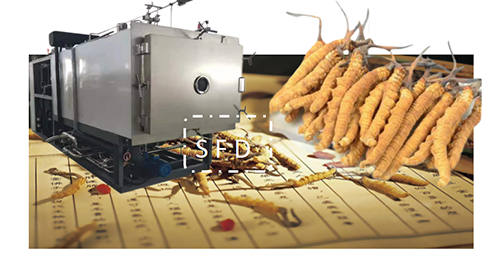 虫草也称之为冬虫夏草,冬虫夏草多生于海拔3000-4000米的高寒山区,冬虫夏草是中国特有的中药材,它与人参、鹿茸并列为三大补品,具有很好的保健功能,因为虫草新鲜保存非常麻烦和困难,而且低温保存后食用不方便。为了人们能一年四季享用冬虫夏草,SFD冻干机工厂通过创新冻干技术,把鲜虫草通过冻干机使用特殊真空冷冻干燥工艺加工冻干虫草,能让虫草的颜色、体型、风味和营养成分得到保存,复水后跟新鲜虫草基本一样。所以虫草冻干机设备的选型需要建立在虫草冻干工艺技术,根据虫草冻干工艺配方要求确定虫草冻干机设备技术指标如下: