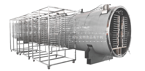 冻干优质宠物食品选用品质可靠,性能优越、稳定的FZG宠物食品冻干机,通过控制预冻温度和速率、控制干燥过程的温度范围(要求在-45~80℃),控制升温速率、控制真空度、控制物料温度等才能有效的冻干宠物食品,所以选择FZG宠物食品冻干机,是决定后期加工生产宠物食品质量的关键!