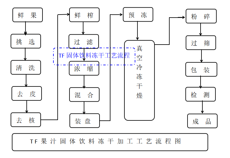 果汁固体饮料冻干工艺流程和固体饮料冻干机设备