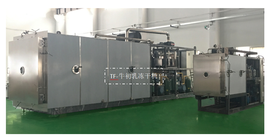 牛初乳冻干机设备是由冻干箱、机架和机组等组成,包括制冷系统、真空系统、循环系统、液压系统、CIP清洗系统、电控系统等装配成具有低温冷冻,真空升华干燥等功能的设备。在用于牛初乳真空冷冻干燥生产可以保存原有的免疫球蛋白和微量元素等活性物质基本不变,具有速溶性,能在常温下保存较长时间。牛初乳冻干机是生物冻干机类别的一种,生物冻干机被广泛用于益生菌冻干、奶制品冻干、菌种冻干、酵素冻干生物制剂冻干、微生物冻干和中药汤剂冻干等使用。