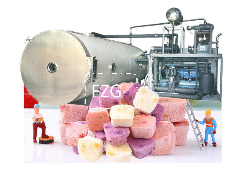 近期热卖的冻干果粒酸奶块具有酸奶和水果的风味、营养成分以及天然无添加,营养美味等特点,深受消费者喜欢。果粒酸奶块是通过FZG冻干机低温预冻结晶后,在真空环境下直接升华成气体除去水分得到。因为FZG食品冻干机具有低温制冷和形成真空环境,需要冻干加工的食品物料一直在低温和真空环境下干燥,能有效的让食品营养成分的不流失,不产生化学反应、不变形和不变色,冻干食品具有复水性的特点。