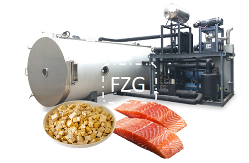 宠物食品冻干机是运用水的三态变化,暨液态、固态、气态,三种状态在不同温度和真空下相互转换或者共存。是利用升华原理,把含水的宠物食品预先冻结成固态,然后在真空环境下不经液体直接升华成气体除去,从而得到冻干宠物食品。三文鱼拥有丰富的营养物质,肉质鲜美,通过宠物食品冻干机加工的冻干三文鱼制品呈海绵状、无干缩、具有良好的复水性、冻干机处理后基本保存原有的营养成分和矿物质活性成分,含水分在3~5%,密封包装后常温下能长时间保存和方便运输。