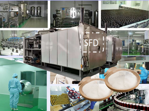 骨素冻干粉冻干机生产线成套设备是先进工艺生产线,满足GMP认证要求,具有全自动运行,工业化管理的特点,SFD冻干机成套设备广泛应用于各大骨素冻干粉加工企业。