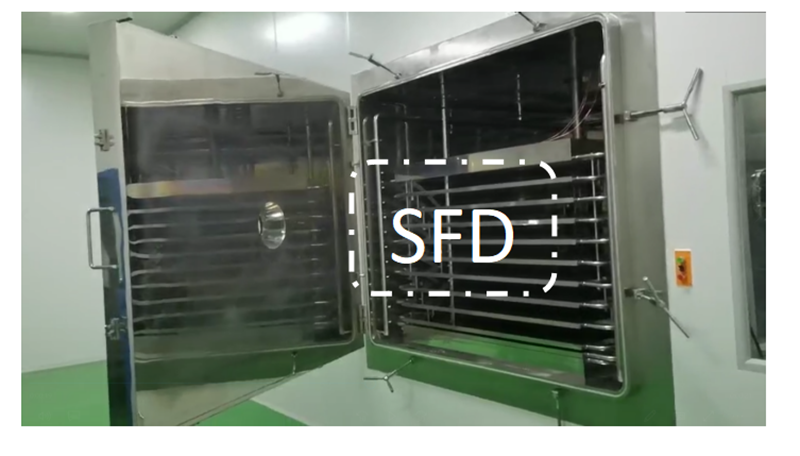 3)解析干燥阶段:在一次干燥处理90%以上的流离水分后,真空冷冻干燥机进入解析干燥,解析干燥是除去10%左右的结合水。
