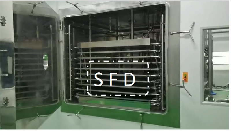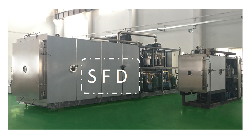 虾青素主要以游离态和酯化态形式存在。游离态虾青素极不稳定,易被氧化因为虾青素本身的活性很高,如果使用传统加工方式处理会造成营养物质的流失,无法保留虾青素成分,因此采用化妆品冻干机加工处理方式,得到虾青素冻干粉。虾青素冻干粉是通过化妆品冻干机的SFD冻干技术,利用冻干机的低温极速冻结,然后在真空环境下不经液体水直接升华除去水分,再低温粉碎得到含水1%左右的粉体,在冻干机加工处理过程中有效保护了虾青素的活性,不易产生化学反应和污染。