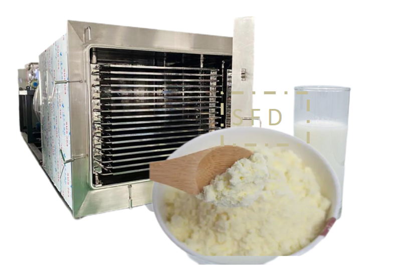 全脂奶冻干粉冻干机生产线也适用于牛奶冻干、羊奶冻干、驼奶冻干、马奶冻干、酸奶冻干和各种奶制品冷冻干燥加工生产。